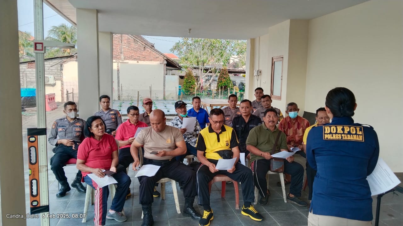 Dokkes Polres Tabanan kembali melaksanakan kegiatan Prolanis (Program Penyelenggaraan Penyakit Kronis) tepatnya di Klinik Bhayangkara Polres Tabanan pada Kamis pagi, 6 Februari 2025, dari pukul 08.00 hingga 10.00 Wita. Kegiatan ini dihadiri oleh 19 peserta yang mengikuti serangkaian acara dengan tujuan meningkatkan kesehatan masyarakat, khususnya bagi anggota yang memiliki penyakit kronis.